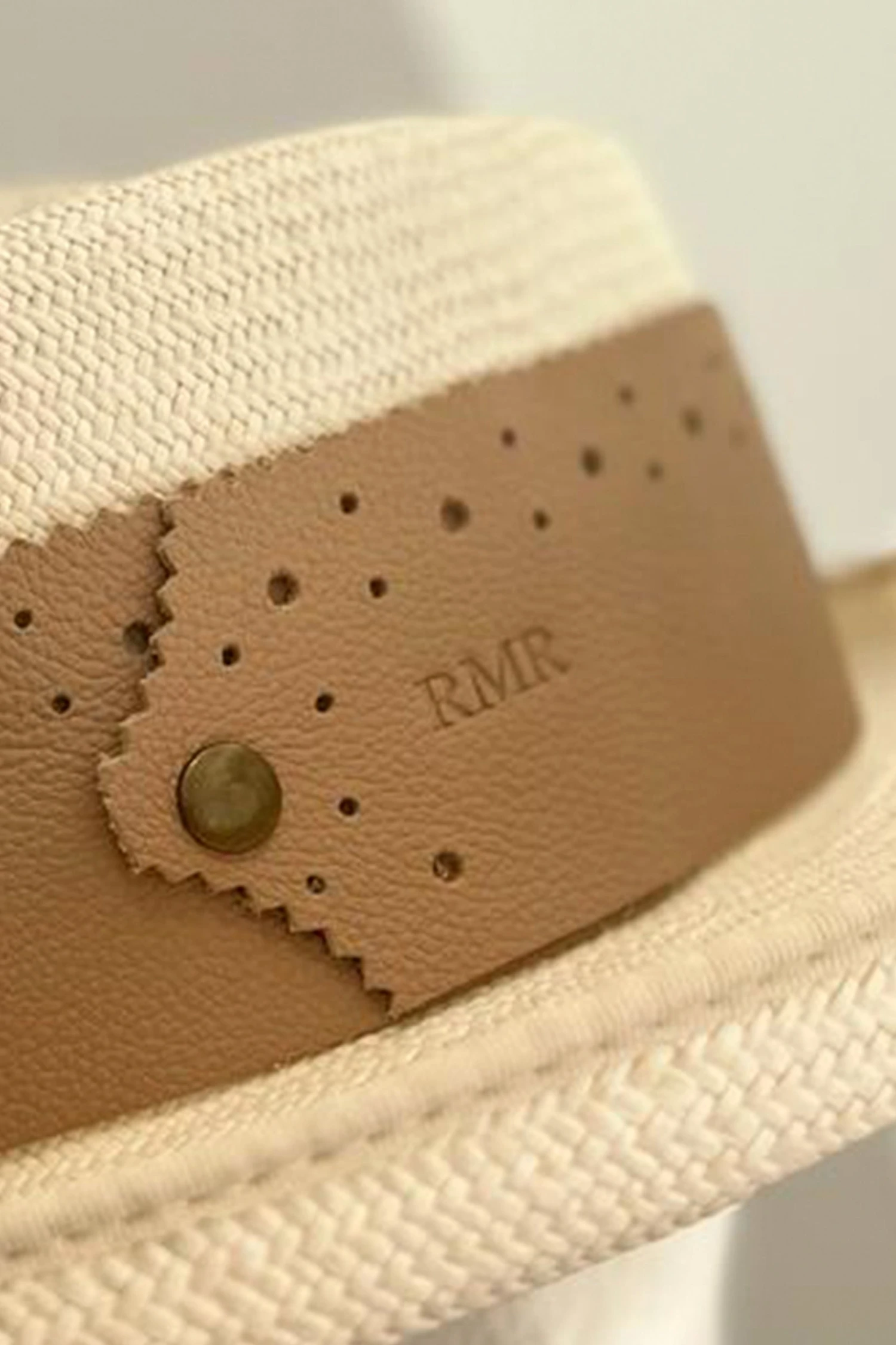 The hat is trimmed with a chic wide leather hand punched band, which is produced without chrome in the tanning process. This style features an elasticated cotton ribbon inside to help secure a comfortable fit.