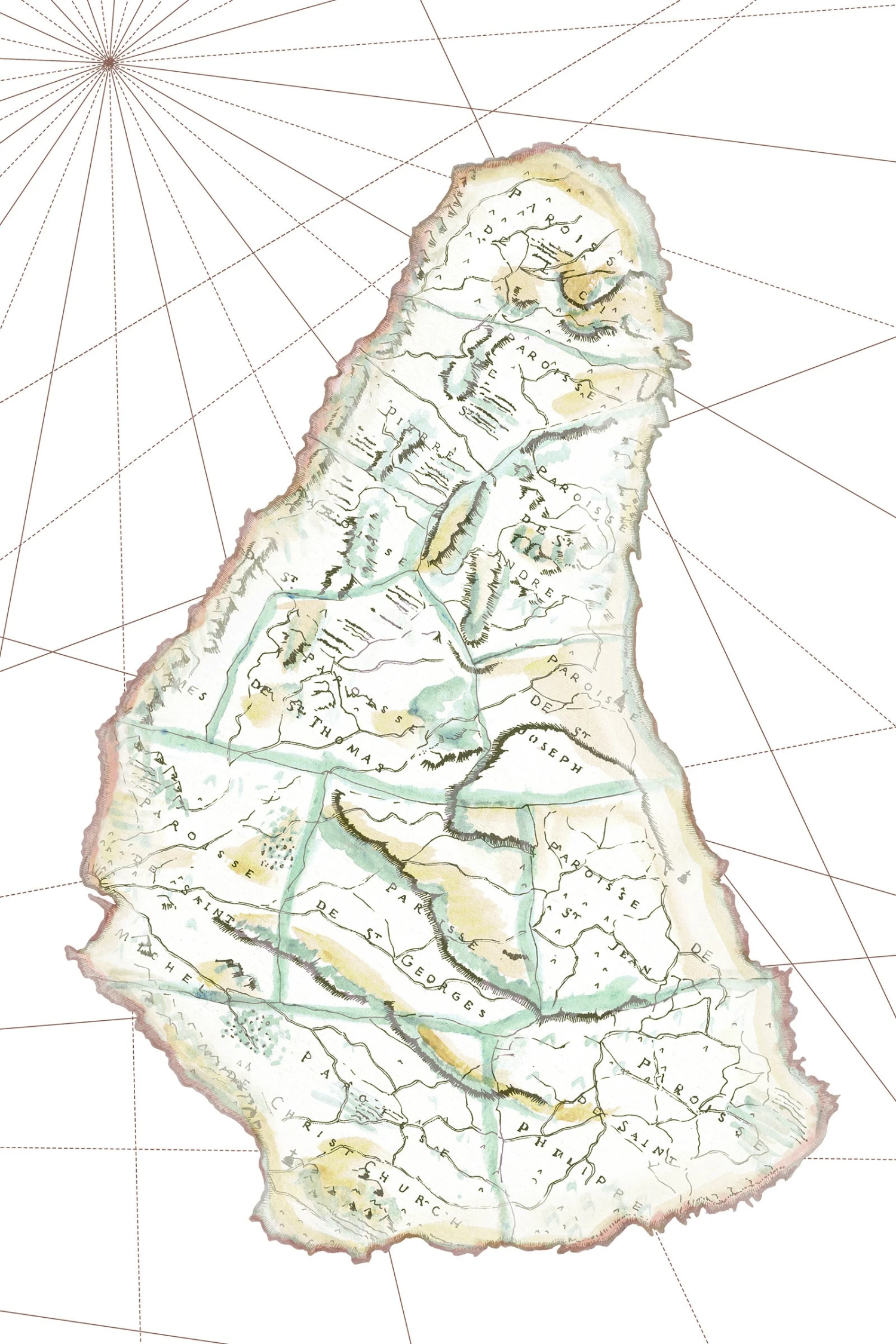 Ancient maps of Barbados and around the Caribbean have been beautifully drawn and illustrated in delicious ceramic pastel tones.