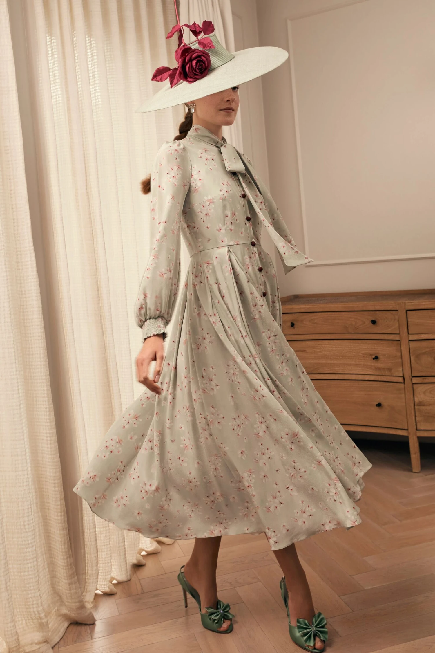 The Bella is our classic button through silk shirt dress which has been reimagined for this season in a delicate floral print.