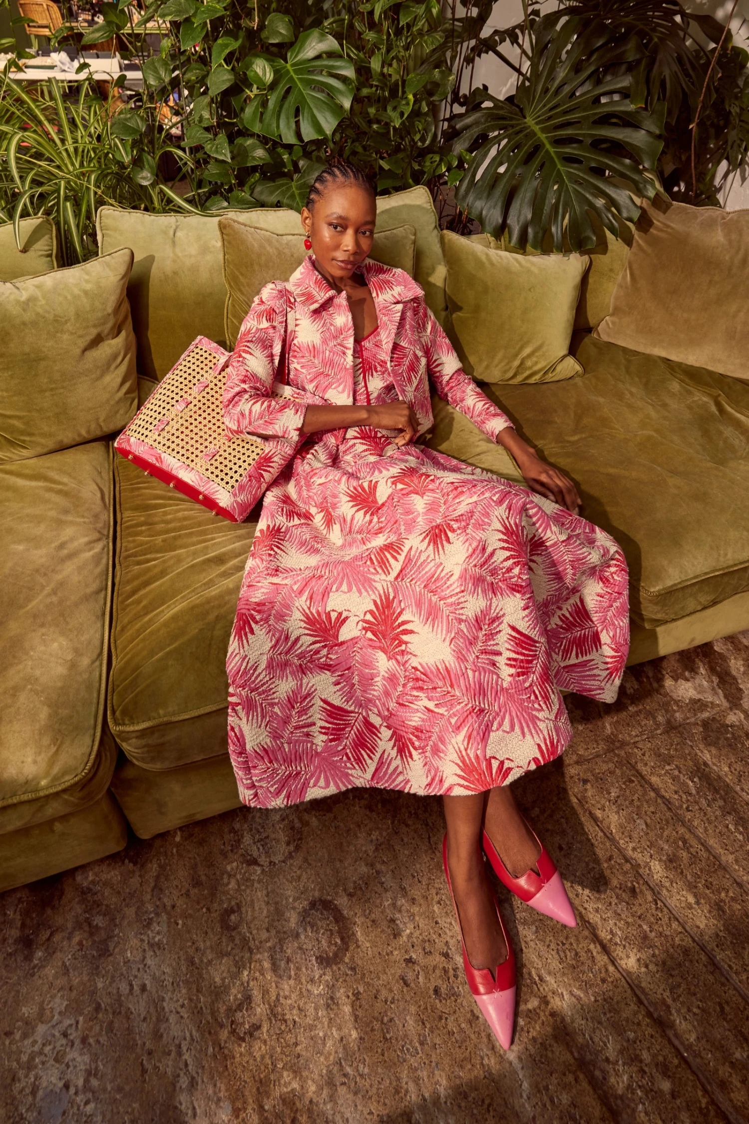 Styled with the coordinating Remy Suit in Palm Jacquard.