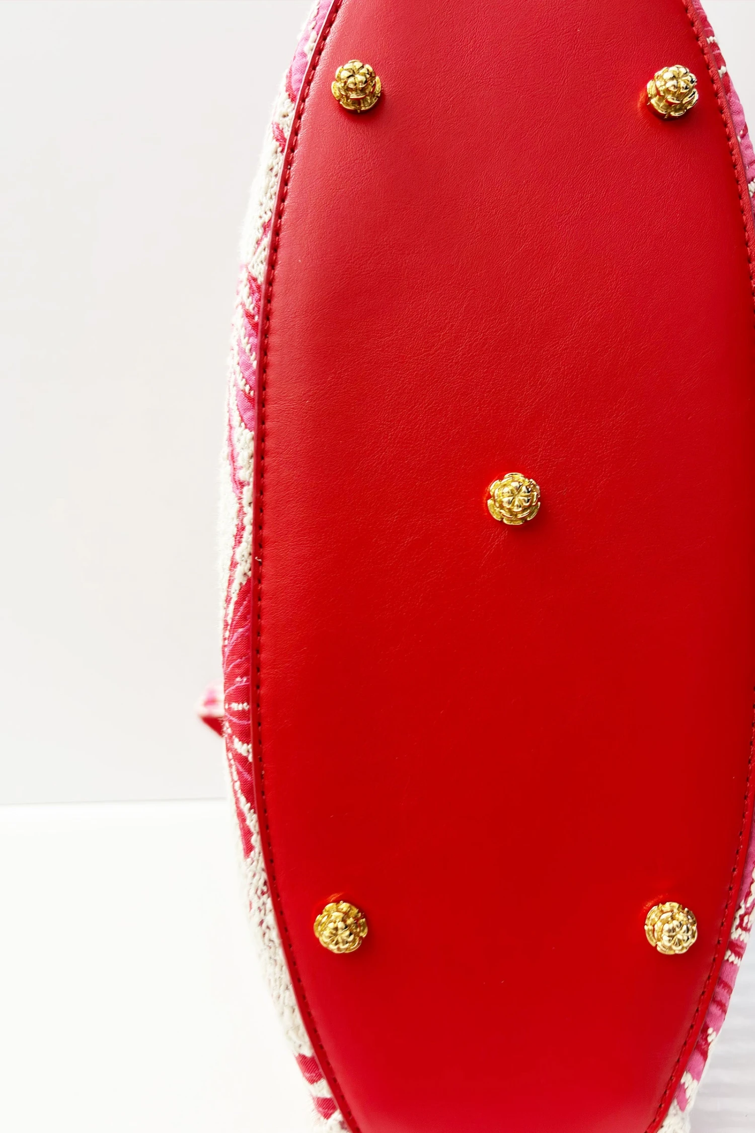 Crafted using natural cain wicker and our signature Palm print Italian jacquard cloth, which work together harmoniously.