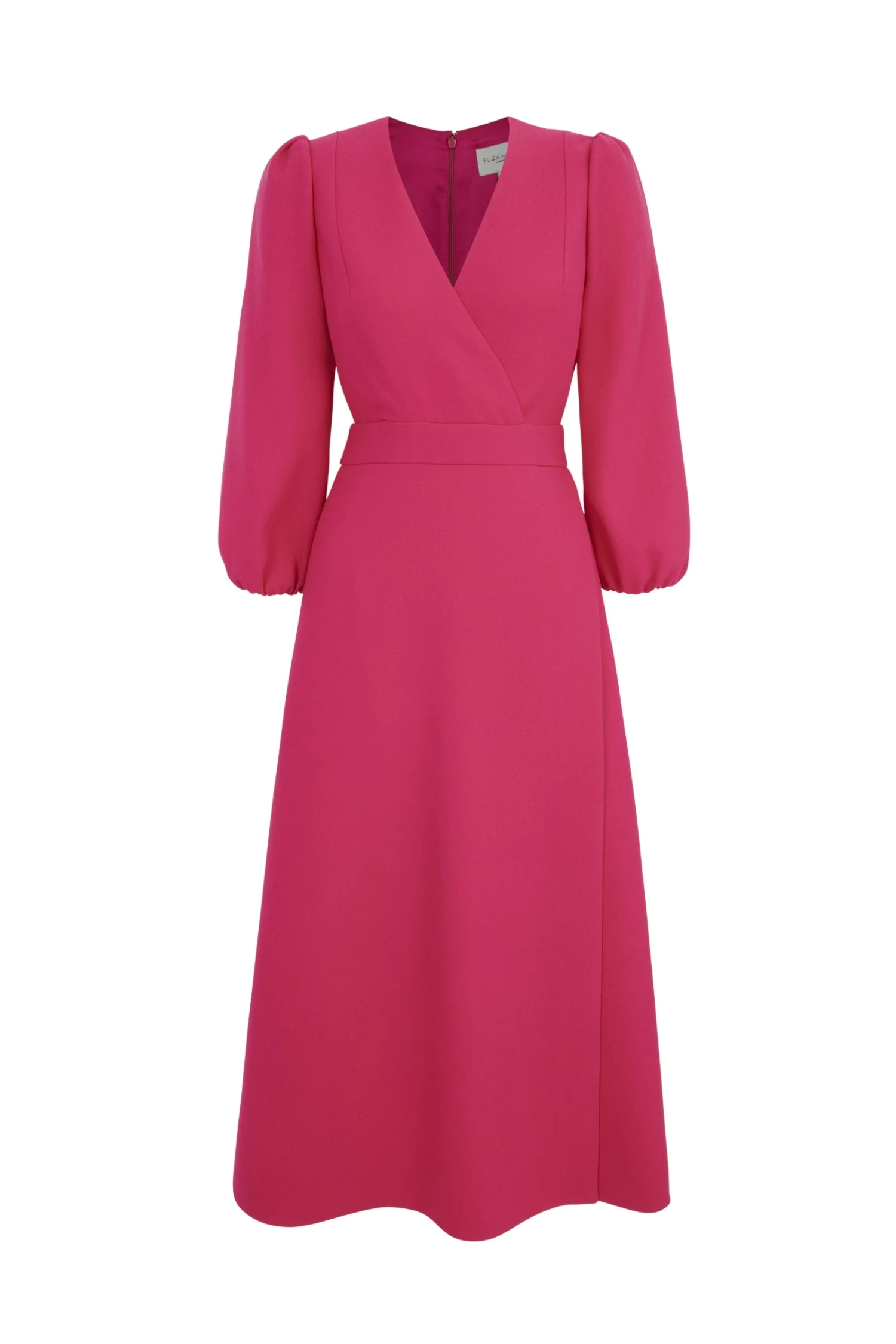 The Clemmie Dress is a beautiful soft fixed wrap modern classic occasionwear dress, with slim bell sleeves that add a subtle drama.