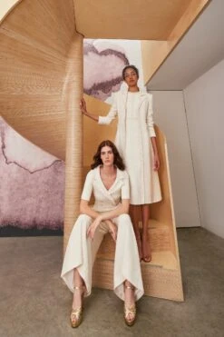 The divine black and white geometrical inserts were woven especially for the dress by a fabulous Italian company and perfected to trim each section of the dress to add beautiful modern touches and unique detail.