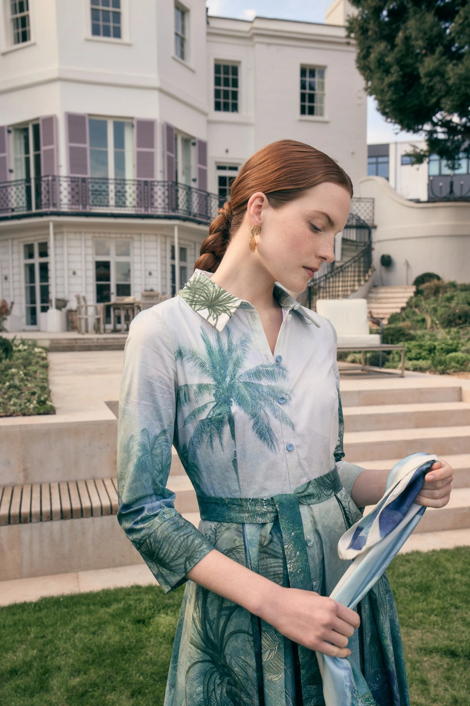 Our stunning Harbour Island cotton shirt dress is a piece of wearable art; an easy silhouette made from beautiful Italian printed cotton, designed with glorious holidays and stylish evenings in mind.