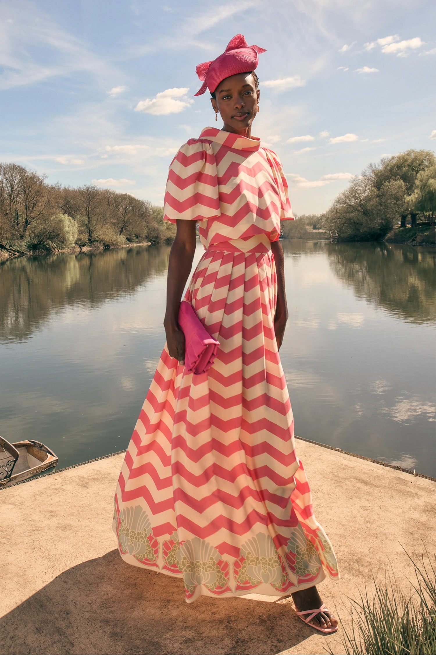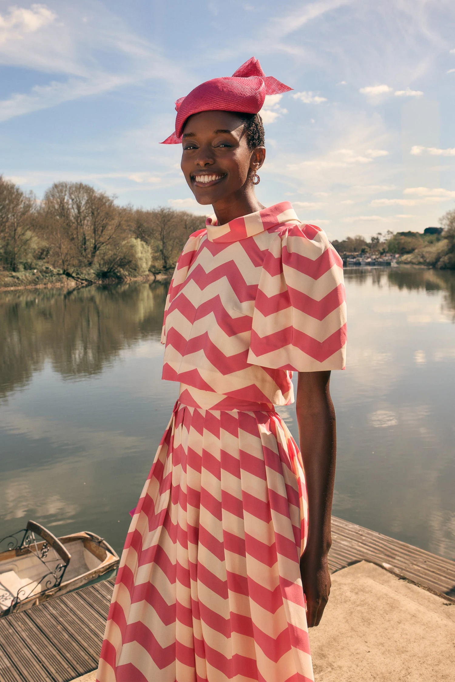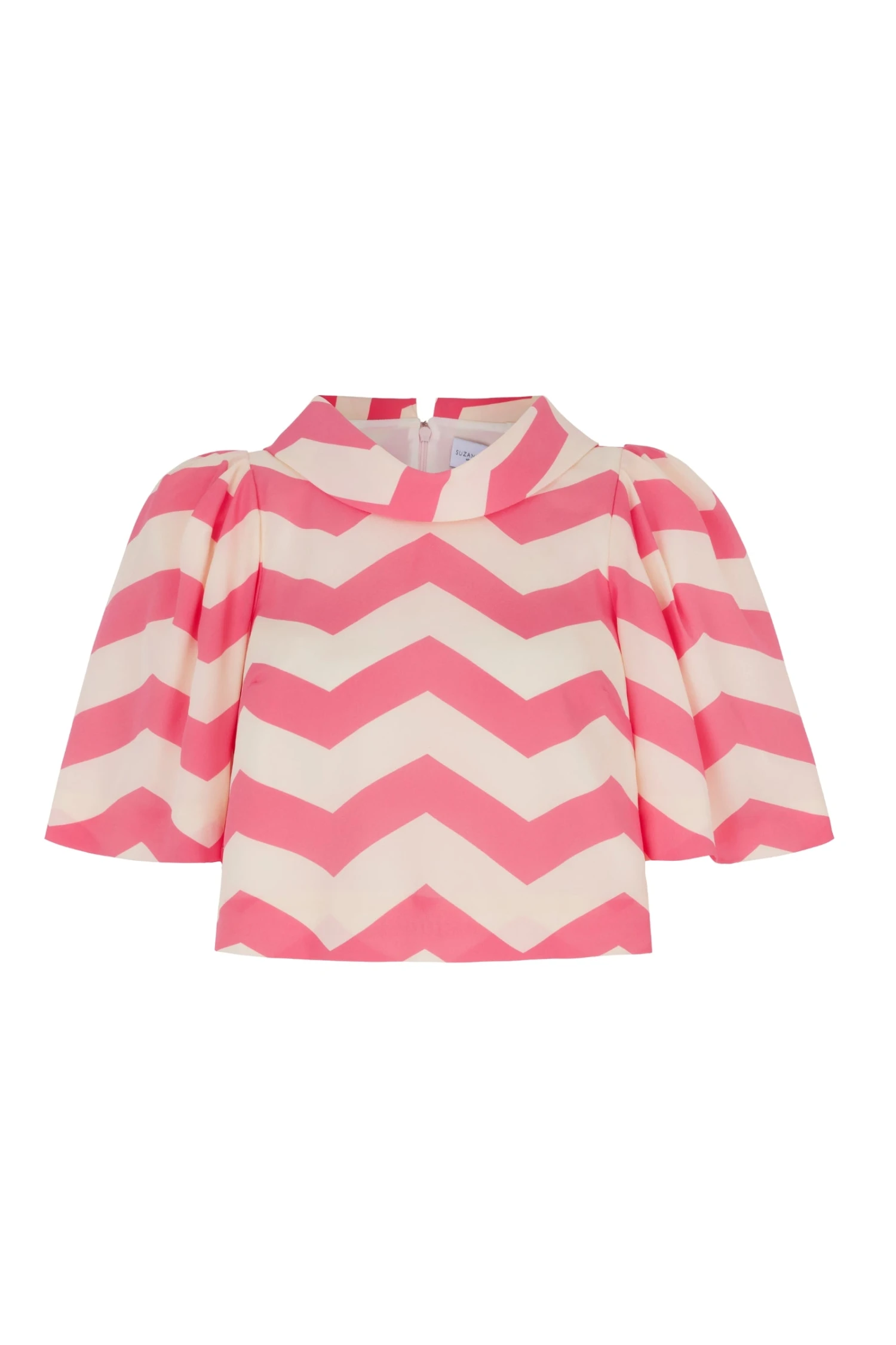 The stunning Italian cloth has a fabulous print , sourced from an exquisite Italian archive which features a delicious retro pink and cream chevron design.