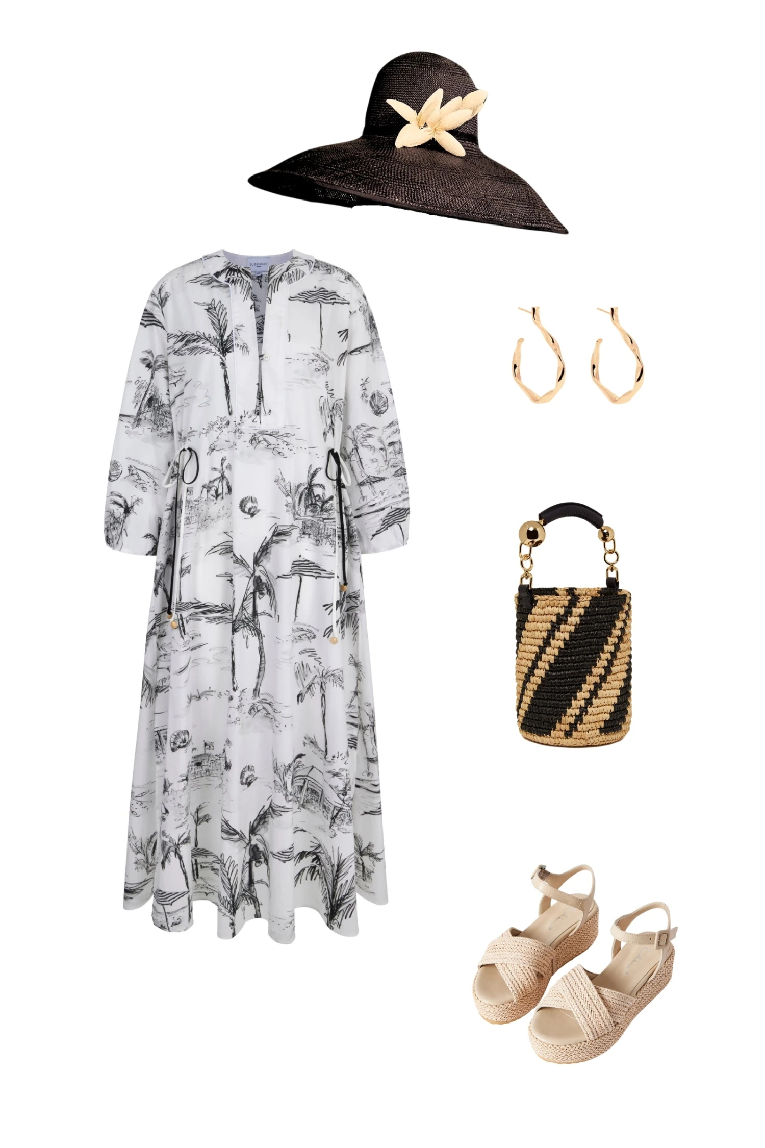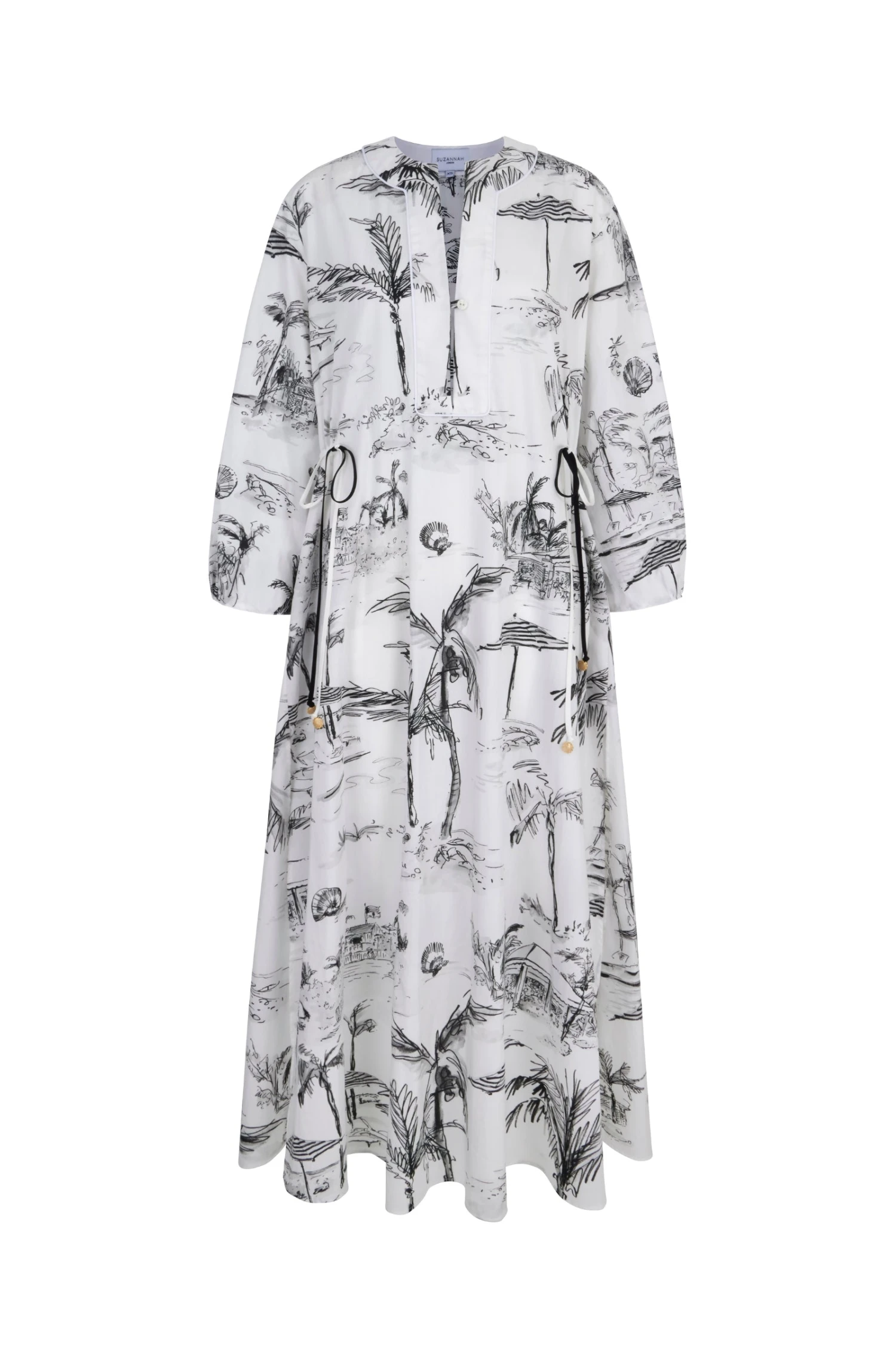 The beautiful monochrome print was inspired by The Bahamas, and is a love letter to travel. The divine illustrations were painted by coveted artist Susannah Garrod and created into beautiful textiles , being printed on Italian cloth.