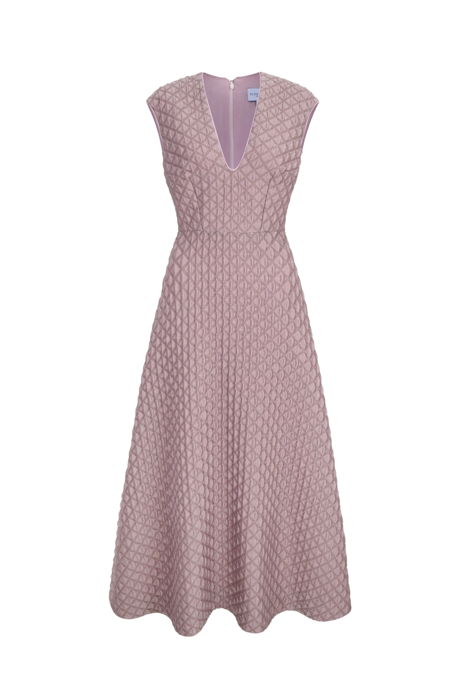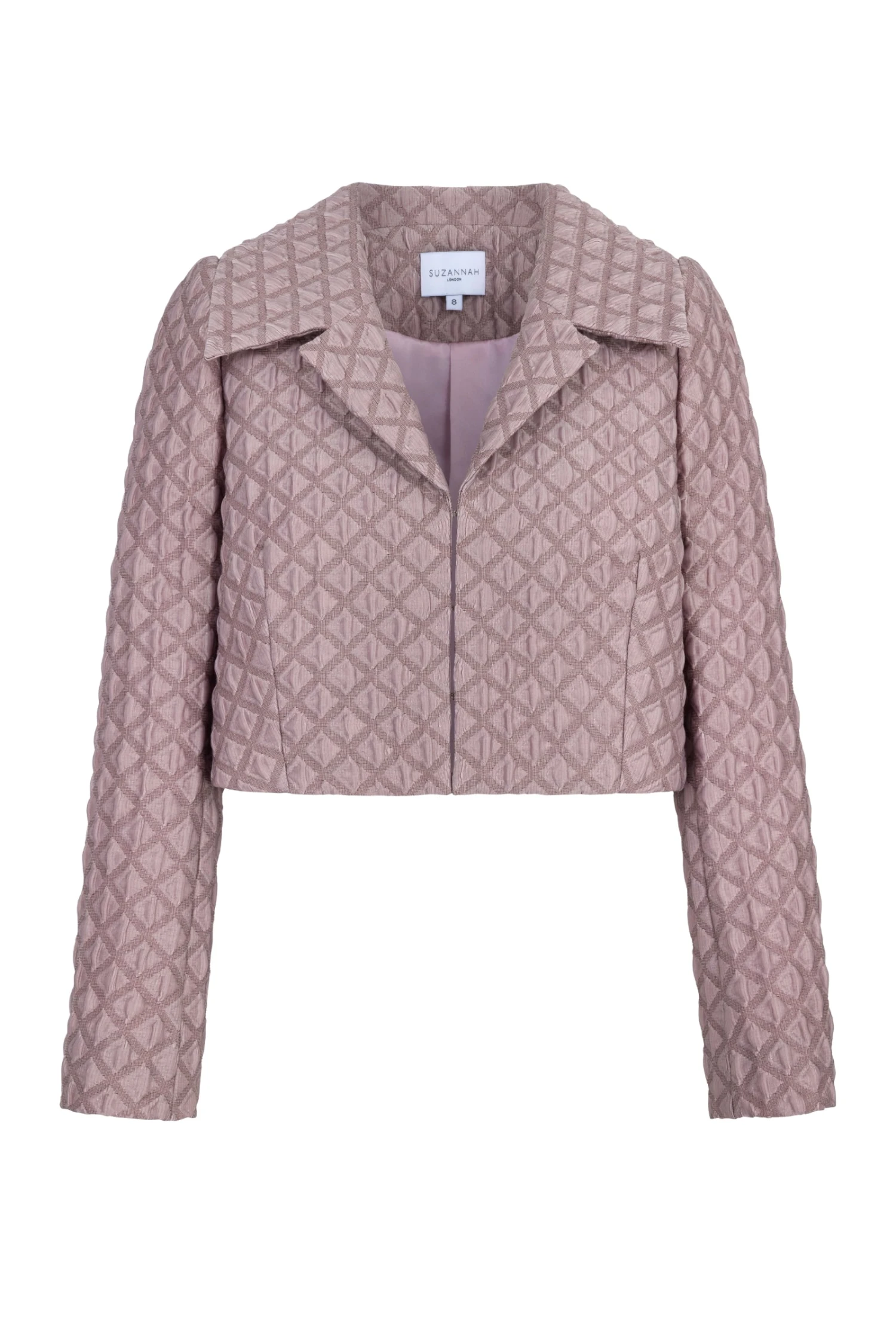 The Pippa dress and Remy cropped jacket set is a stunning modern occasionwear look, The pieces are constructed in a beautiful raised cloqué of textural diamonds, in a muted vintage pink shade, this outfit offers a timeless softly tailored look.