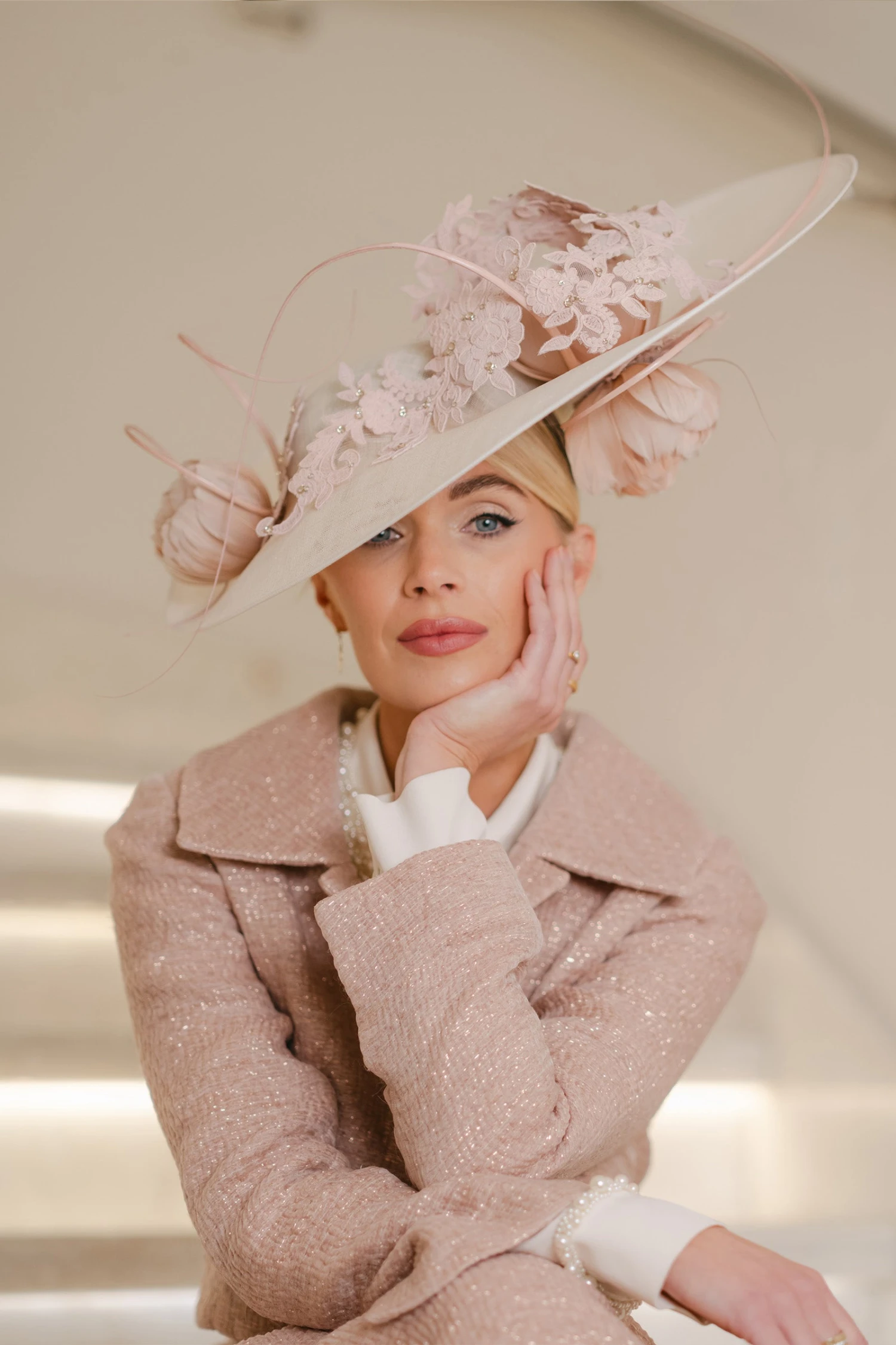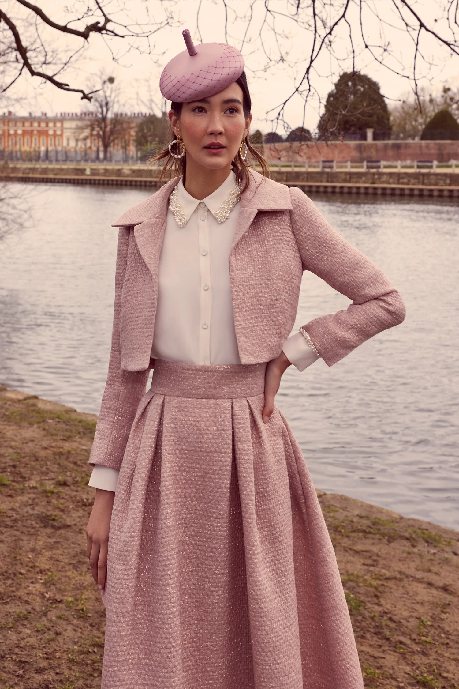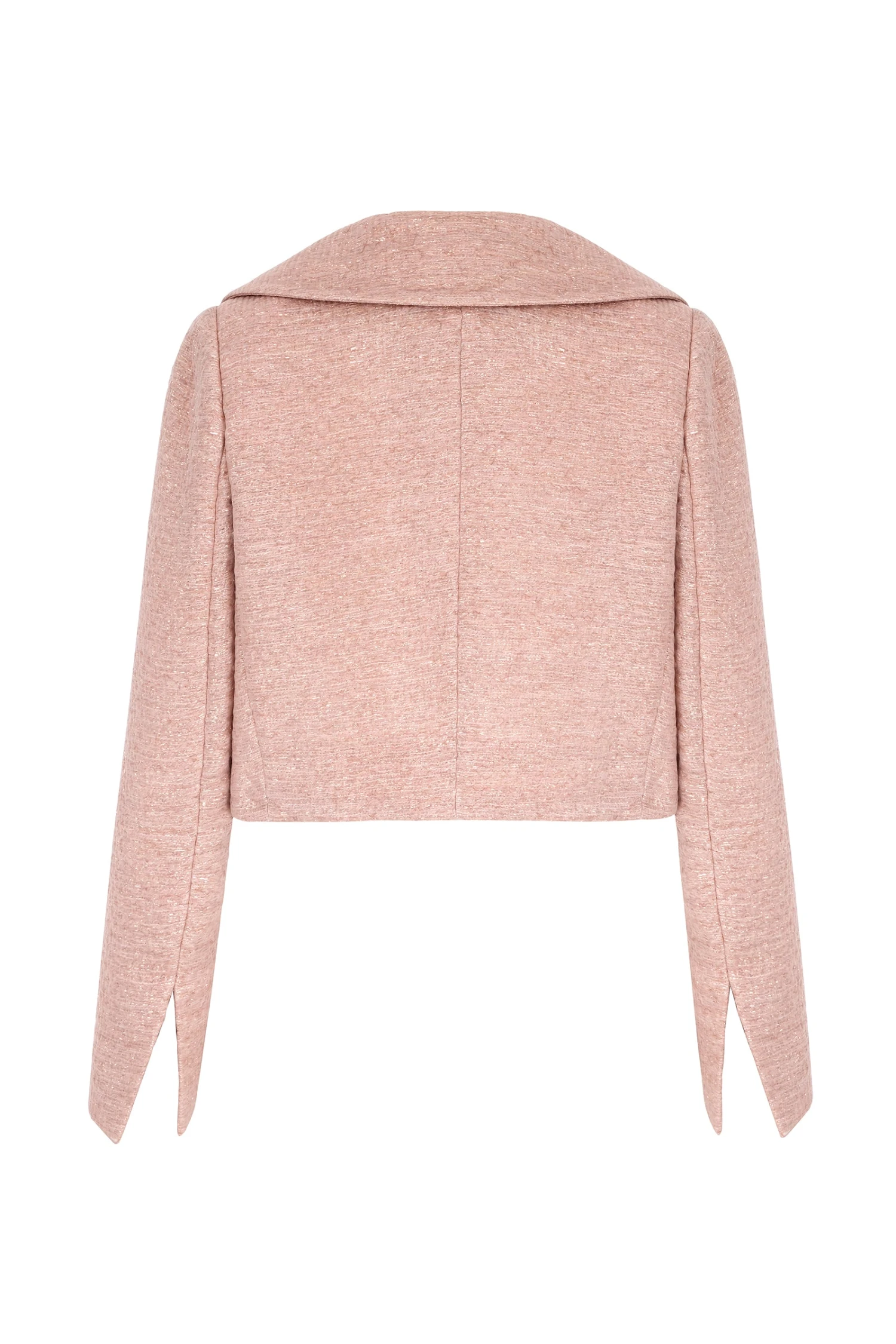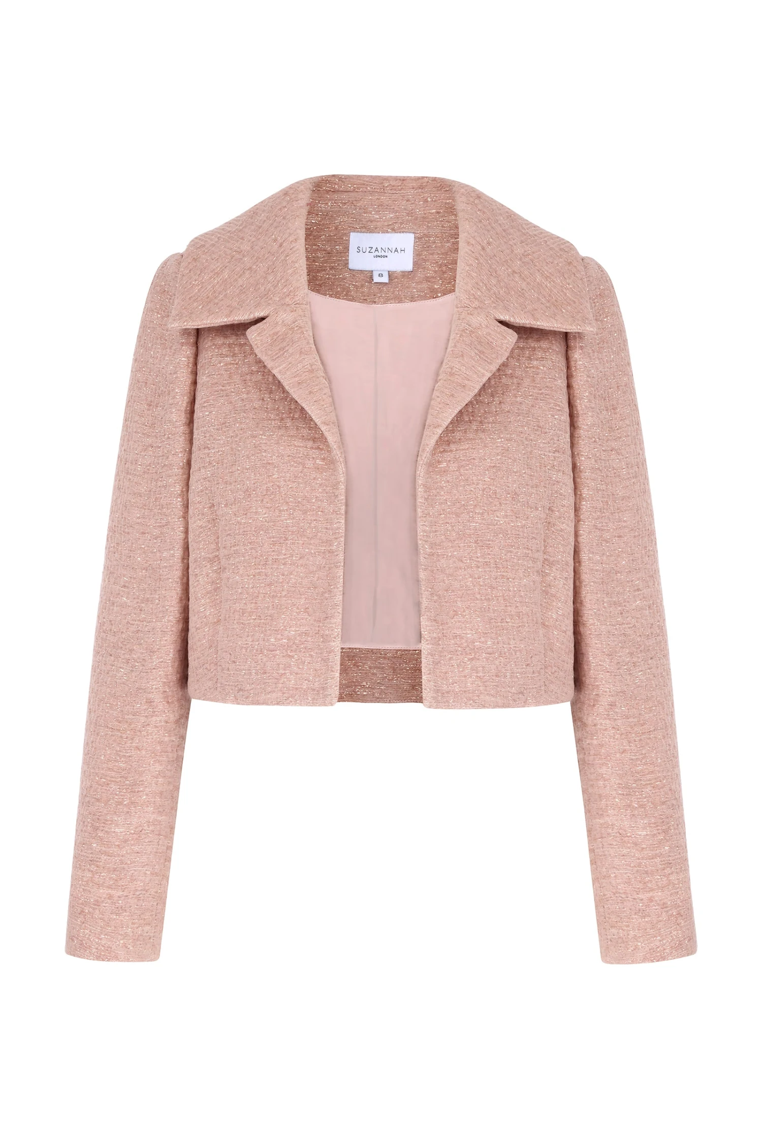 Our Remy Cropped Jacket is a best seller, and is now available in a divine textured glimmer weave Italian cloth in beautiful dusty pink, with a rose gold metallic yarn intertwined within the intricate fibres of the cloth.