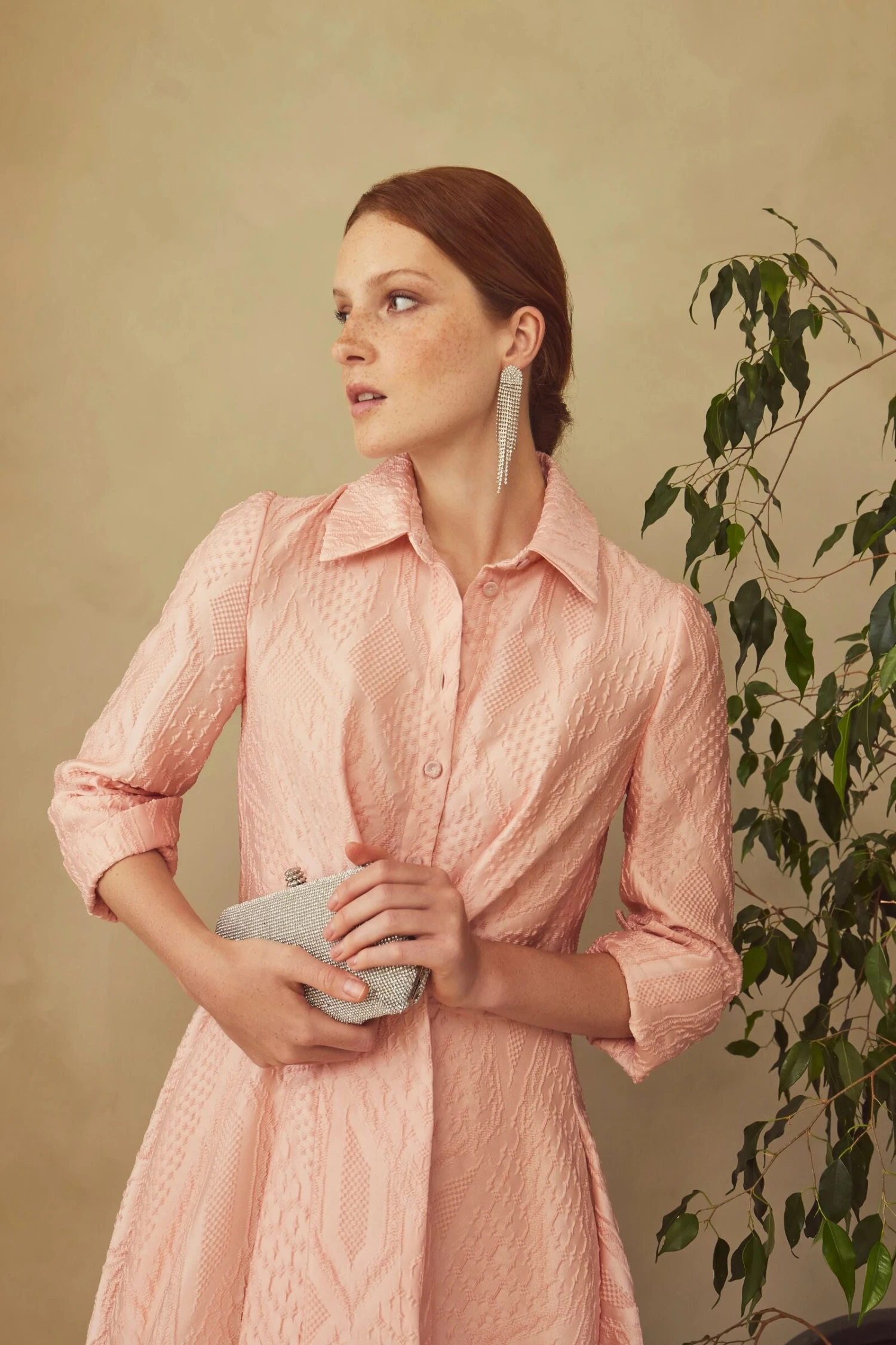 The Rimini shirt-waister dress in a beautiful frosted blush hue is a stunning choice for any fun, fabulous occasion.