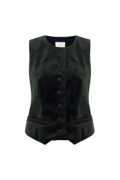 A beautiful tailored tuxedo style waistcoat, cut from a stunning olive cotton velvet.
