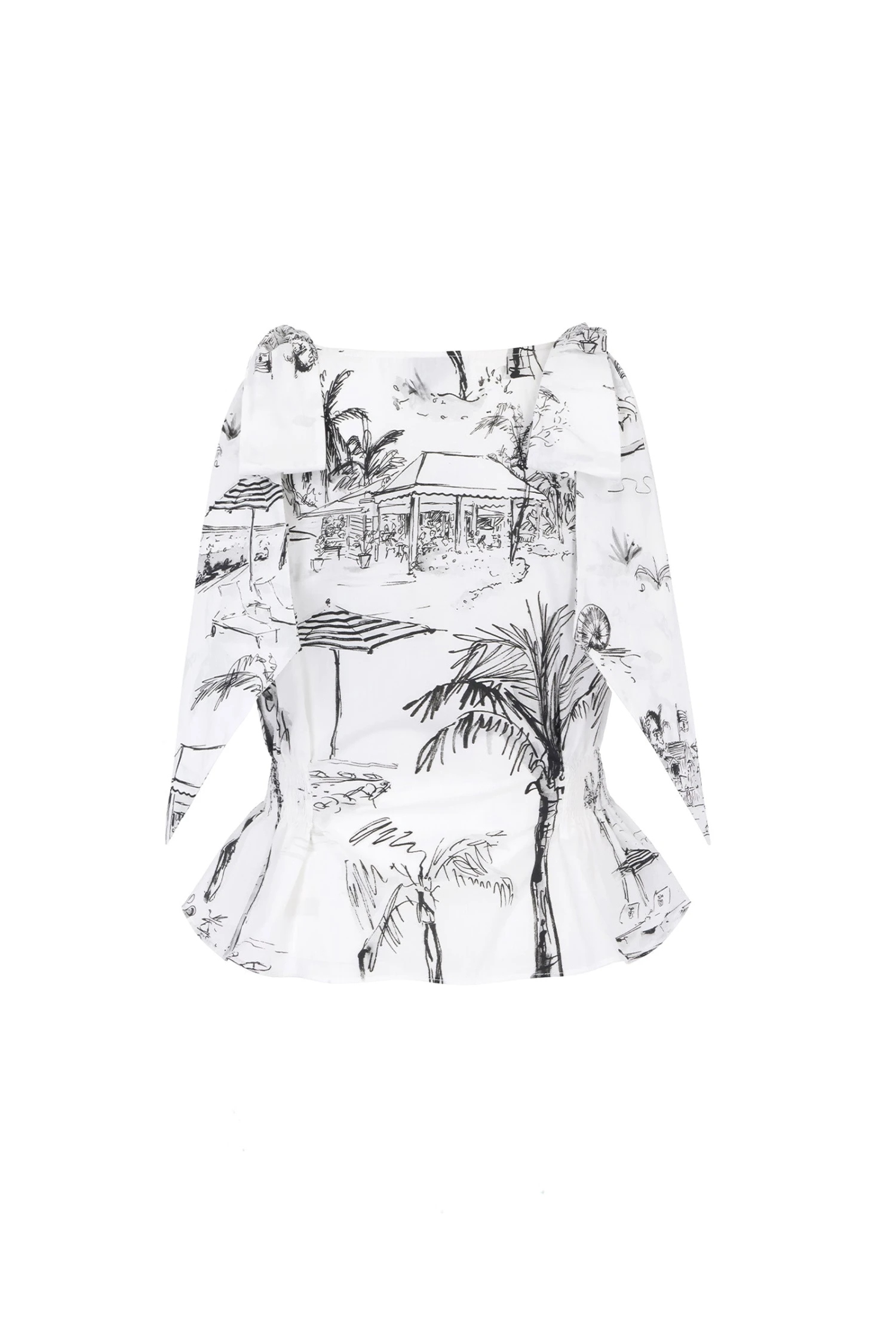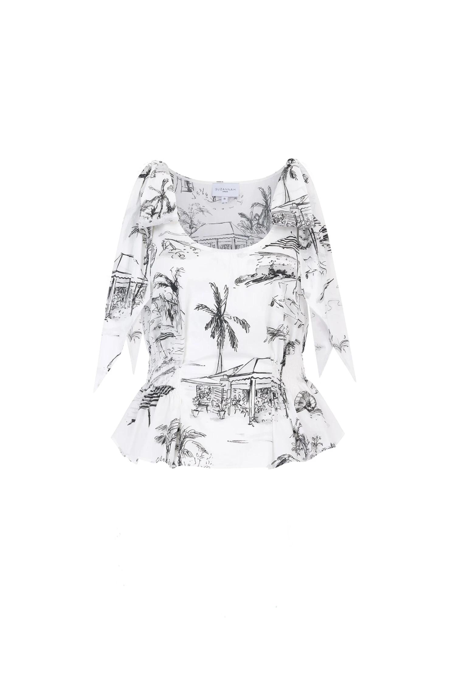 The Tie Shoulder Imogen Top is beautifully cut, and crafted from Italian lightweight BCI Cotton which has been printed on a fresh crisp white ground.
