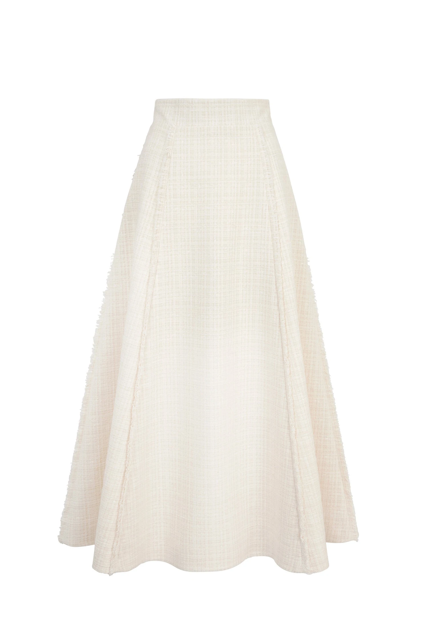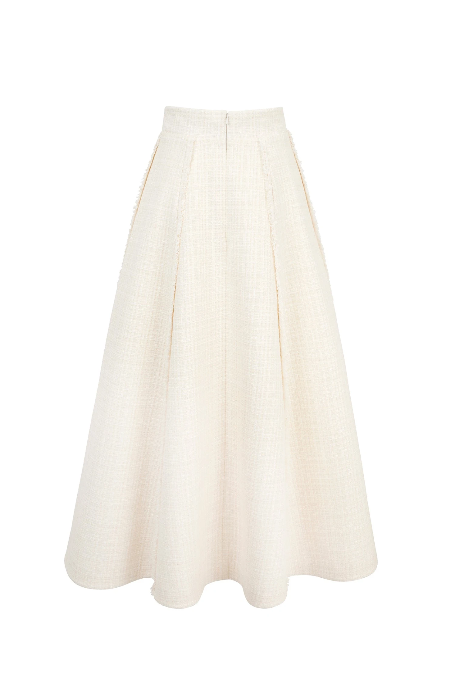 The natural edge of the tweed has been used to trim the vertical skirt seams, creating an exquisite finish. This super-flattering skirt makes the most divine statement, and has a centre back invisible zip for step in ease.